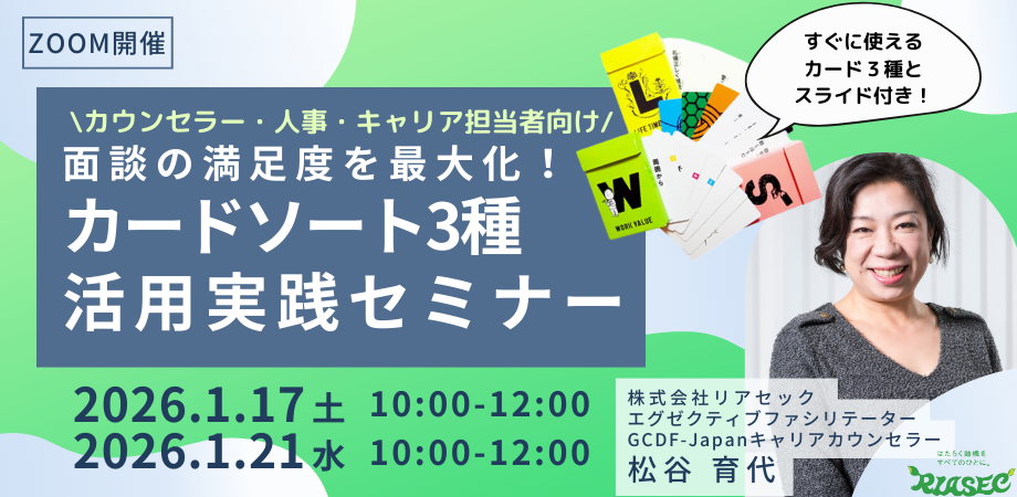 キャリア面談や相談現場で「価値観・強み・やりがい」を引き出すための効果的なツール「カードソート」を体験しながら学べます。