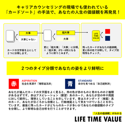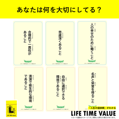 人生の、スイッチ 「価値観」がわかる大切にしたいことを信じていく LIFE TIME VALUE ポストする シェアする 販売価格: 3,300円(税込み) 会員価格 (税込み) 通常価格 (税込み) 在庫 商品コード cardsort-lv JANコード 数量 - + カートに入れる 入荷通知メールを希望する カテゴリー 自分がわかるカードソート 個別送料 0円 【内容物】スタンダードカード18枚・アスピレーションカード18枚|説明書1部【製品仕様】ケースサイズ:93mm×63mm×15mmカードサイズ:88mm×58mm